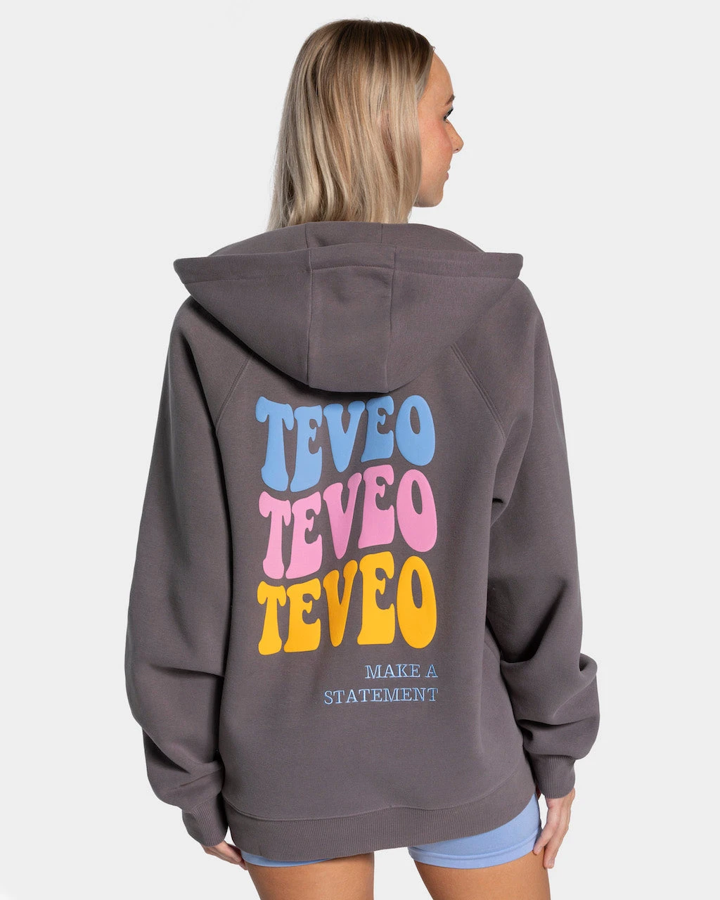 Mit unserer Candy Oversized Jacke in Graphit ziehst du alle Blicke auf dich! Denn der dreifache TEVEO-Schriftzug in den Farben Blau, Rosa und Gelb sowie der gestickte Schriftzug „Make a Statement“ sind die Highlights deiner Candy Oversized Jacke. Gleichzeitig hast du mit der Jacke einen warmen Begleiter für kühlere Tage.