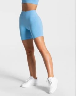 Erlebe die perfekte Kombination aus Funktionalität und Style mit unseren Seamless Sport Shorts in Babyblau. Diese Shorts wurden speziell entwickelt, um dich bei jeder Bewegung zu unterstützen, egal ob beim intensiven Kraftsport, entspannten Yoga oder deiner morgendlichen Laufrunde. Dank des innovativen Designs profitierst du von einer Silhouette, die nicht nur gut aussieht, sondern sich auch fantastisch anfühlt.