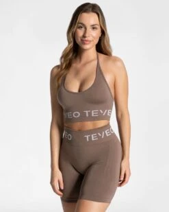 Vervollständige deinen ikonischen TEVEO Look mit dem Signature Neckholder BH in der eleganten Farbe Mokka. Dieser Sport-BH wurde speziell entwickelt, um eine harmonische Balance zwischen ästhetischem Design und funktionaler Performance zu schaffen. Der tiefe Rückenausschnitt setzt deine Muskulatur perfekt in Szene, während die verstellbaren Neckholder-Träger für eine individuelle Passform sorgen.
